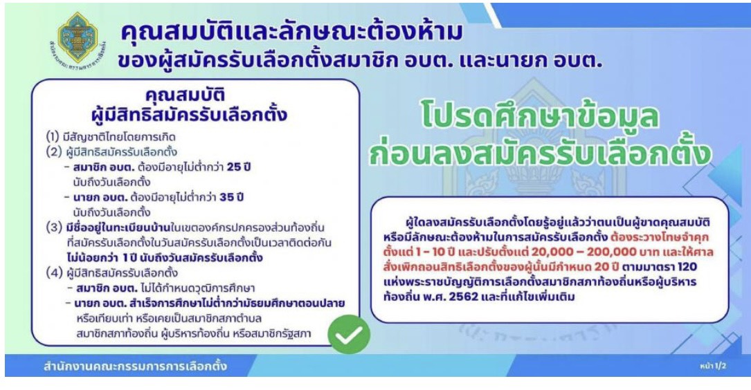 คุณสมบัติและลักษณะต้องห้าม ของผู้สมัครรับเลือกตัง สมาชิก อบต. และ นายก อบต. |